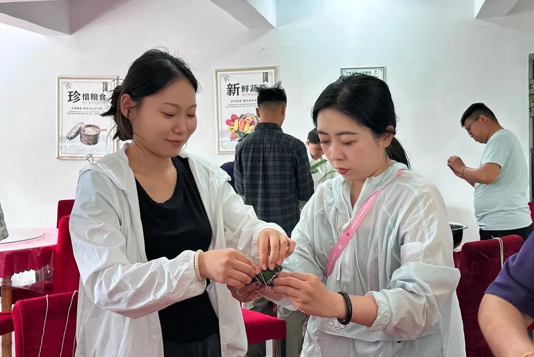 在端午知识有奖问答环节,村民们与学生们踊跃互动,从节日起源到民俗寓意,一问一答间深化了对传统文化的理解。随后,众人围坐一起包粽子、品尝特色美食,在互动中感受端午传统美食文化与乡土人情的温暖交融。