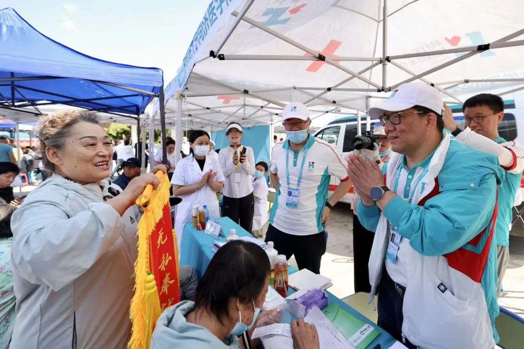 上午10时,额敏县也迷里广场人头攒动,数百名群众早早排队等候。韩红带领由全国三甲医院专家组成的医疗团队,为当地居民提供内科、儿科、眼科等多项免费诊疗服务。