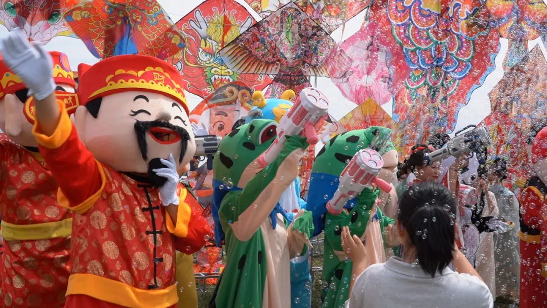 与此同时,国潮风筝嘉年华活动同样精彩纷呈,趣味十足。魔幻泡泡秀与玩偶派对吸引众多大小朋友驻足。可爱萌趣的青蛙、棕熊等玩偶与孩子们亲密互动,漫天飞舞的七彩泡泡在阳光下闪烁,欢声笑语回荡在草原上空。随后的花海国潮风筝秀更是将活动推向高潮,五彩斑斓、造型各异的风筝在蓝天翱翔。它们与广袤草原、缤纷花海相互映衬,构成一幅如诗如画的美丽画卷。