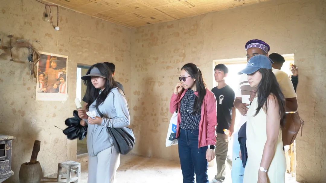 走进裕民县 7080 年代印象主题场馆,绿皮火车、老式物件等瞬间唤醒旧日时光。留学生穿梭于地窝子、年代房屋间,如同置身中国社会发展的“时光博物馆”,从70年代的土坯房到现代智能社区,从手写书信到5G通讯,真切感受中国发展的沧桑巨变。