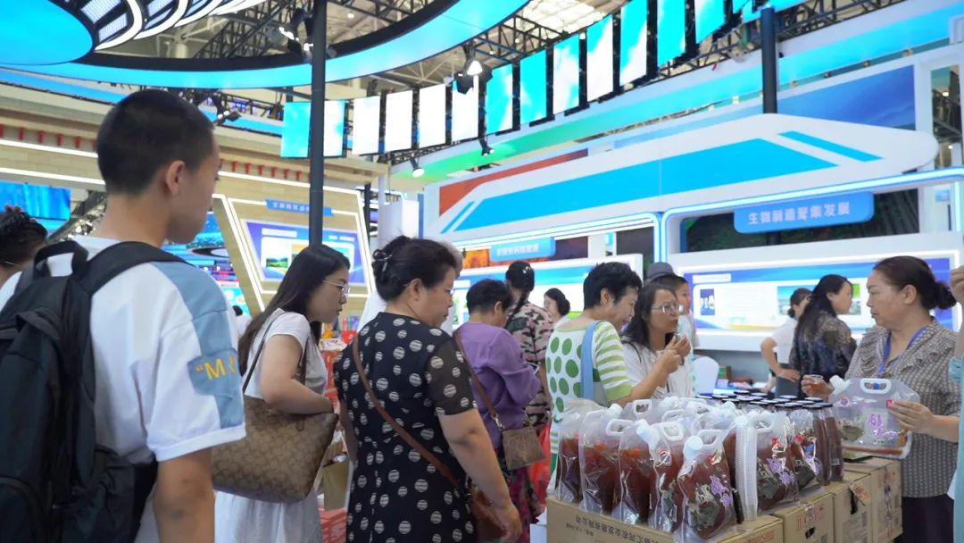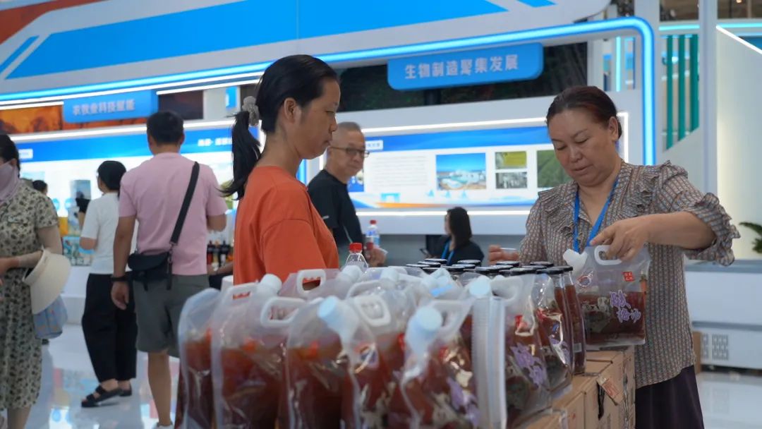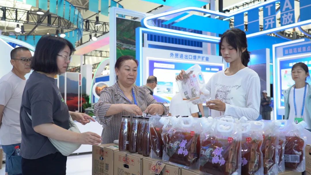 在展会现场,裕民酸梅汤展位前热闹非凡。浓郁的色泽和酸甜的香气吸引了众多参观者驻足品尝,不少人当场就被其独特的口感征服,整袋整箱地购买。