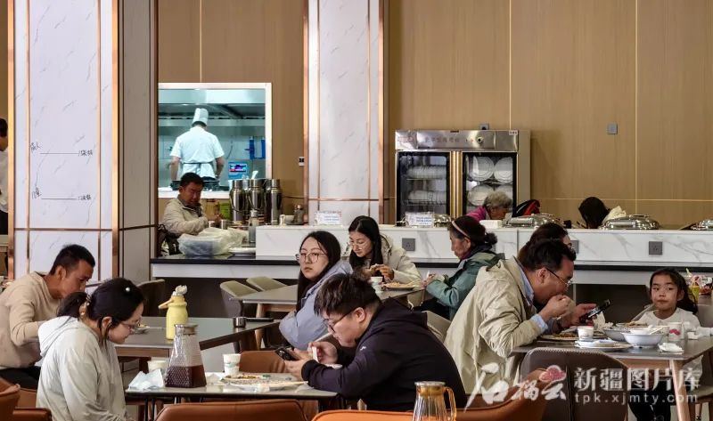 6月27日,游客在“乌苏驿”旅游多功能综合服务中心里的一家餐厅用餐。