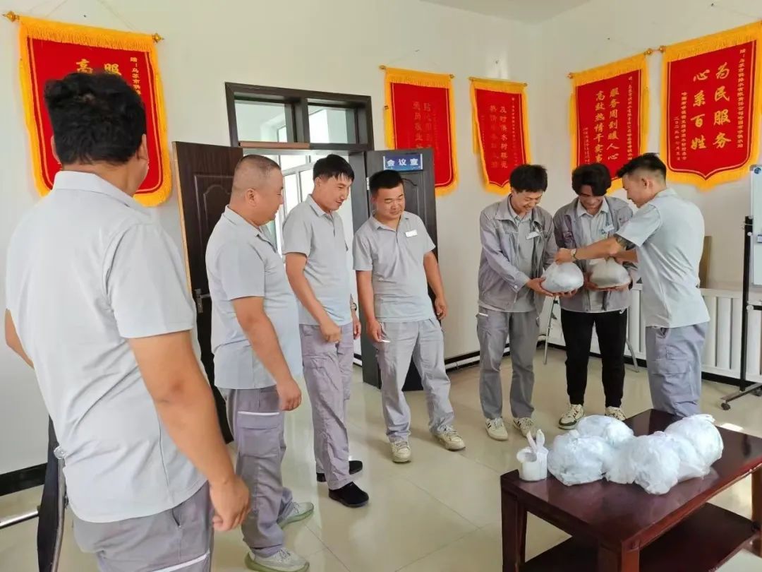 在乌苏市老旧小区管网改造现场,地面被烈日晒得滚烫,一线工人正挥汗如雨地切割管道。公司慰问组将带着凉意的纯净水递到工人手中,绿豆和冰糖也被细心地分装成小袋,并嘱咐道:“熬点绿豆汤,解暑又败火,家里人也能一起分享。”