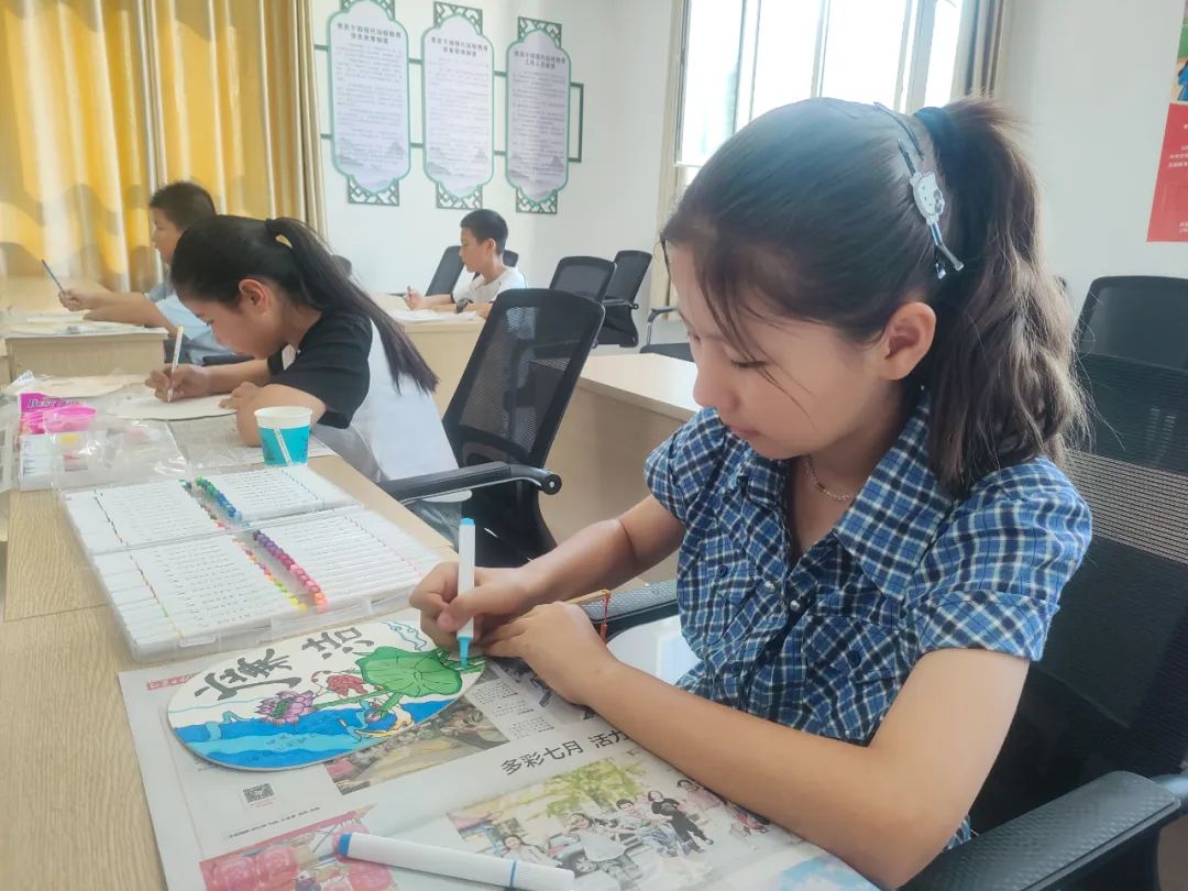 活动现场,党员志愿者精心准备了团扇、颜料、画笔等绘画工具,邀请了志愿者老师为大家讲解绘画技巧和廉洁文化内涵。老师以生动形象的方式,将廉洁故事、清廉寓意融入到绘画创作中,引导青少年们在扇面上绘制出具有廉洁寓意的图案。