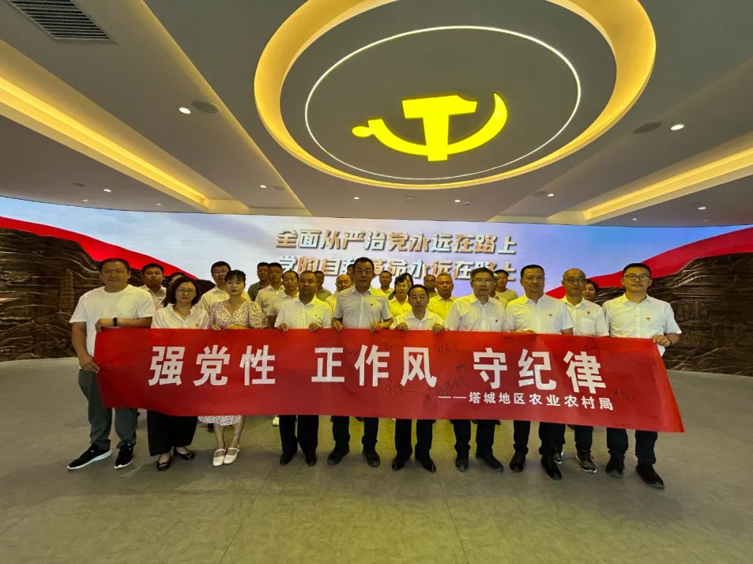 活动伊始,全体党员干部领会学习了廉政建设对农业农村工作及乡村振兴的重要意义。随后,警示教育片《贪奢败家》以真实案例敲响廉洁警钟;党员代表诵读老一辈革命家家书,传递红色廉洁传承;年轻干部代表以《致我心中的那抹红》抒发廉洁初心;干部家属宣读《家属助廉倡议书》并发放,倡议家属共筑家庭廉洁防线;党员干部及家属在“强党性、正作风、守纪律”横幅签名明志 。活动尾声,众人前往塔城廉政教育基地参观,实地感受廉政历史与警示案例,筑牢思想防线。
