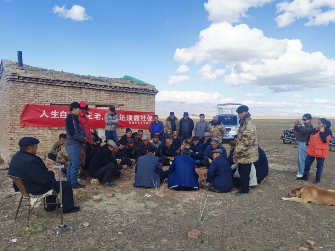 2023年9月5日,在托里县乌雪特乡达尔布特村阿什勒春秋牧场,张同良联合托里县社保局开展社保知识宣传。