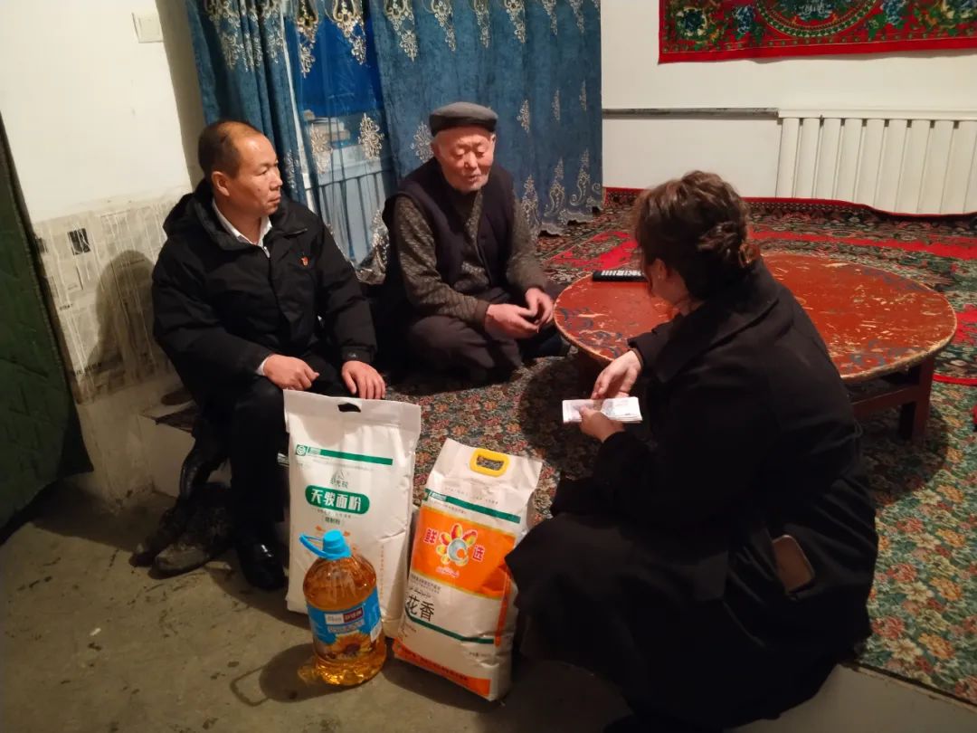 2024年2月8日,张同良在托里县乌雪特乡达尔布特村联合村“两委”节前走访慰问三老人员。