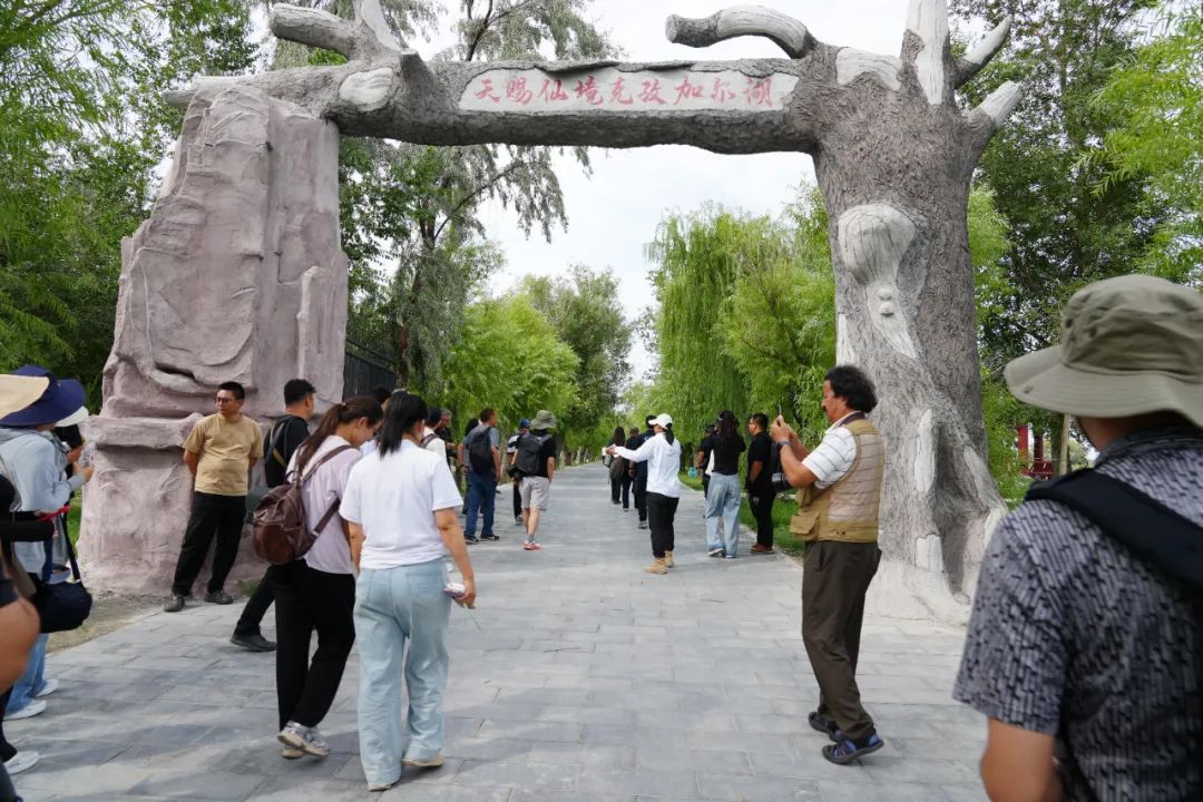 在乌苏市古尔图镇沙漠胡杨采风点,摄影记者们纷纷拿起相机,拍下荒漠中的孤树,见证岁月的沧桑。新疆资深纪实摄影师李铭说:“这里自然资源丰富,有世界上面积最大、保存最完整的原始白梭梭林,有千年不倒的胡杨林,‘武侠小镇’可以感受到沿街一百多家店铺门头仿古特色建筑,令人印象深刻。”