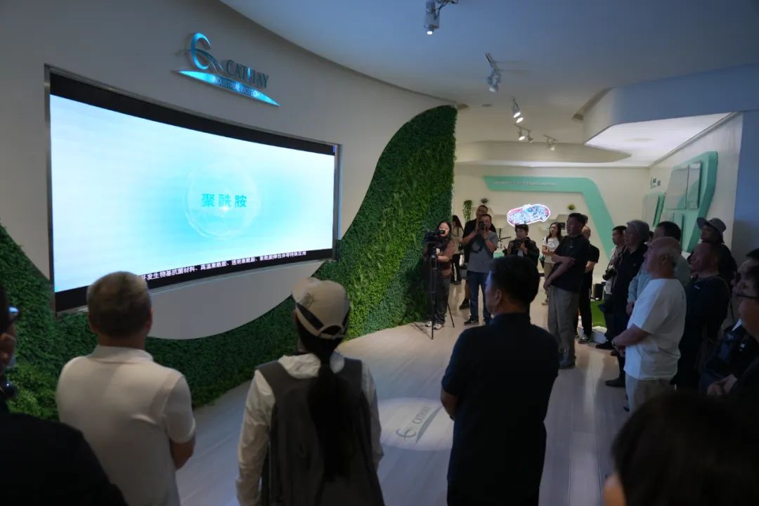 在凯赛(乌苏)生物材料有限公司参观的记者们。