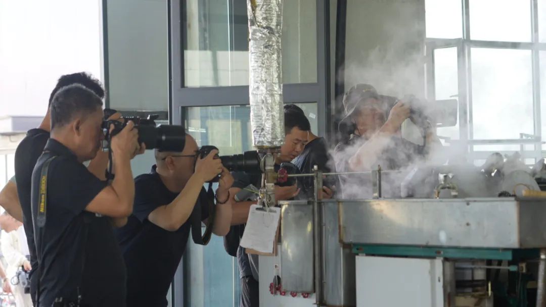 记者们把镜头对准桑蚕茧流水线。