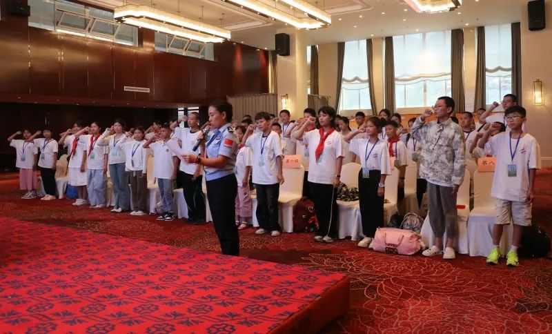 当天下午,来到夏令营地后举办了开营仪式,并为夏令营营长授旗,全体营员在营旗下宣誓遵守纪律、爱护环境、维护团结,争做新时代好少年。