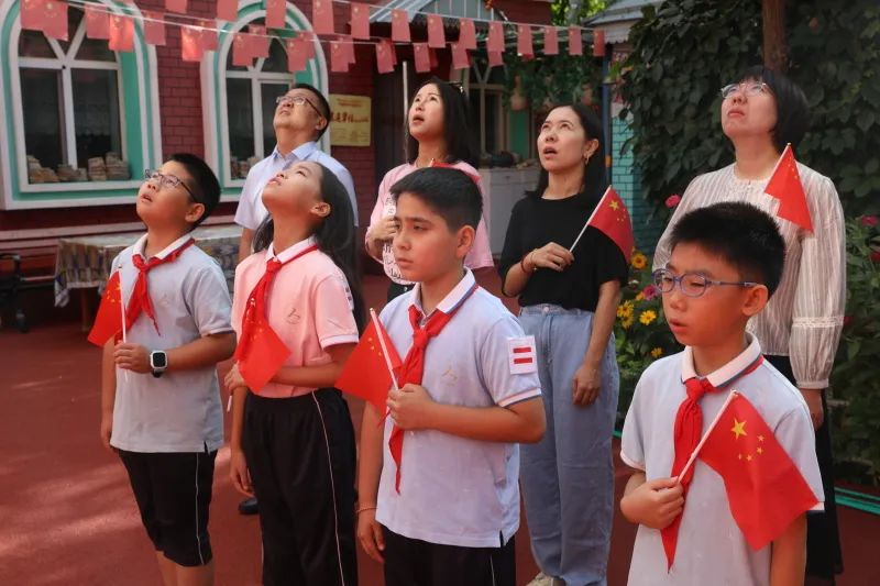 同学们走进全国民族团结进步模范沙勒克江·依明的小院,共同参与了一场意义非凡的升国旗仪式,并现场聆听了沙勒克江老人的爱国主义宣讲,升旗仪式后沙勒克江老人表示,他向中关村第三小学石榴籽项目代言人于宝宝同学一行赠送了在小院升过的一面国旗,以及有代表意义的小礼物。通过与沙勒克江老人的亲密互动,同学们在心中种下了爱国的种子。