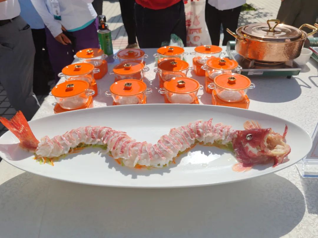 温州国际大酒店是第一次参加塔城的美食节,这次他们带来了店里的3道招牌菜,分别是游龙线钓活东星斑、手工象形芒果慕斯、卡加露鱼子酱烤鸭双味。厨师长陈宝财说:“我代表温州国际大酒店来参赛,希望我们的菜品能获得好评。我们带来三道招牌菜都是我们酒店的特色,希望外来的嘉宾,能品尝到我们本土特色菜肴,以及我们本土的美食。”