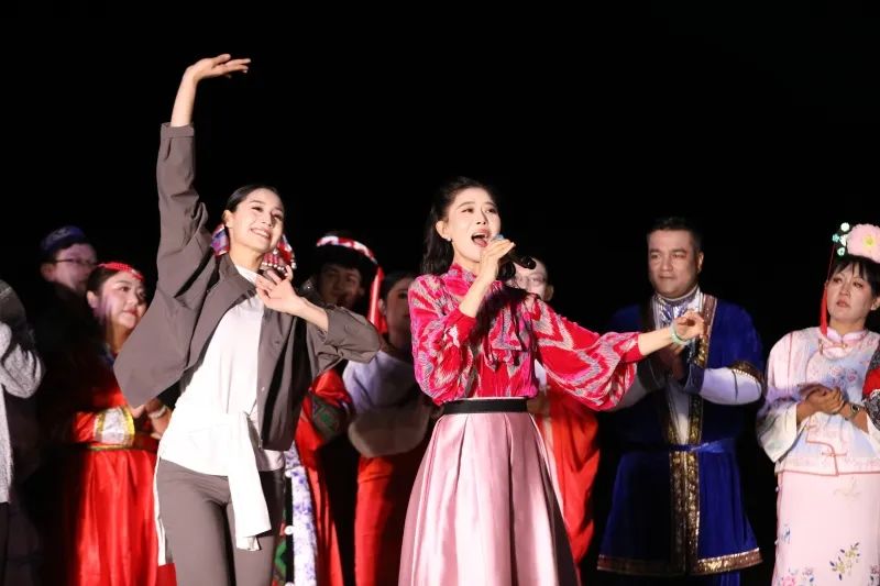 本地歌舞演员也伴随着欢快的节奏在景区内翩翩起舞,热情邀请嘉宾们加入其中,即兴互动间,爽朗的笑声与欢快的舞步在景区萦绕,不仅展现了民族歌舞的魅力,更通过与嘉宾互动,生动地诠释多元文化的交融之美。