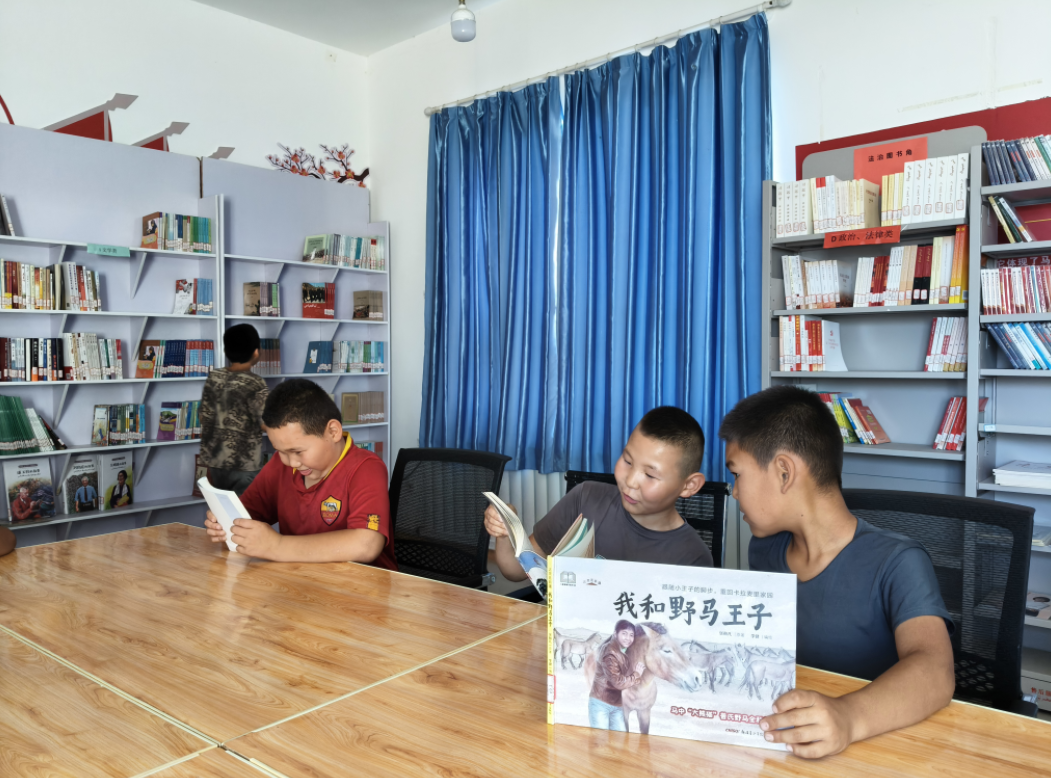 阿克别里斗村的孩子们在村级图书馆内阅读。