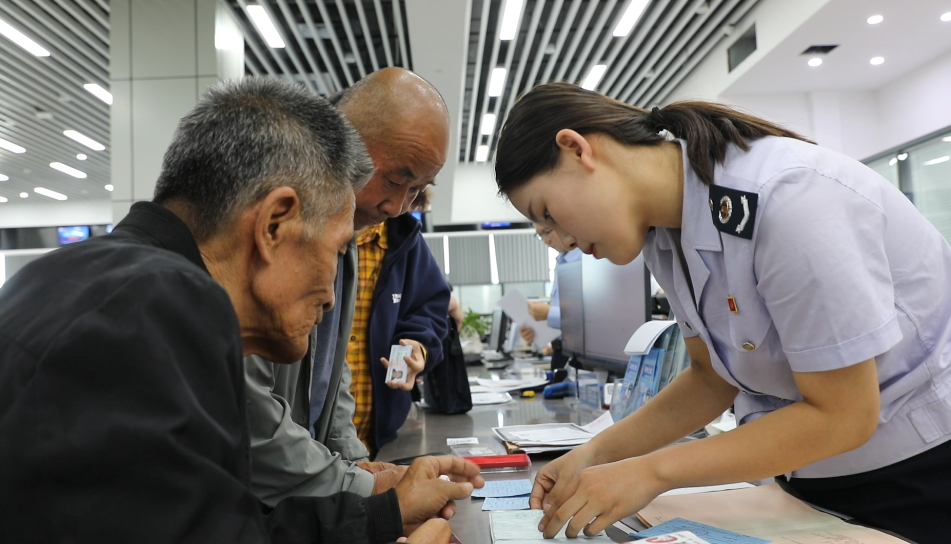 工作人员为群众办理业务。