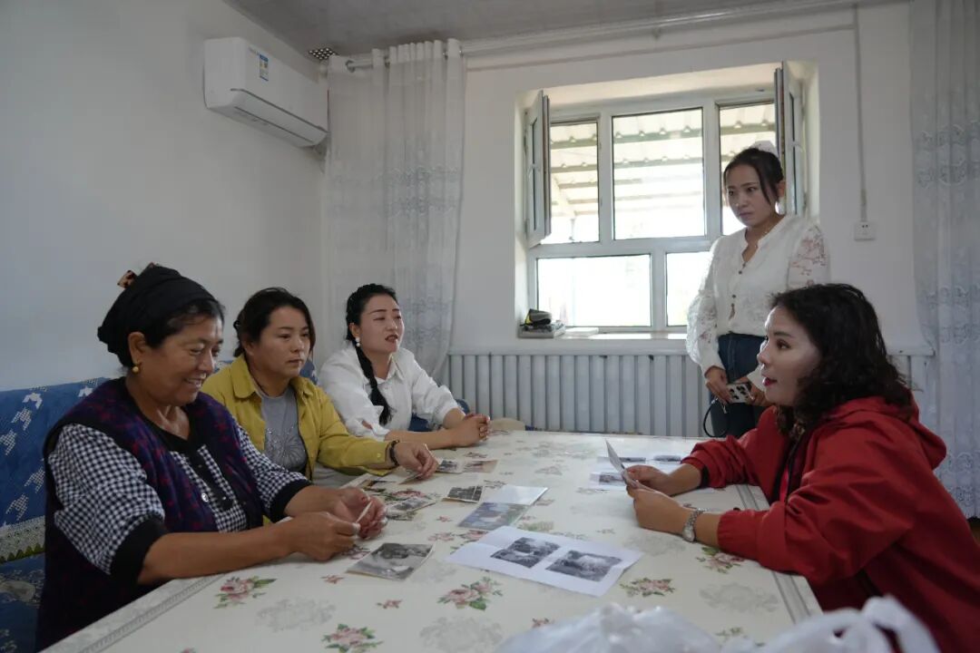 第一站,记者来到团结的家里,院子里的花颜色鲜艳耀眼,院子里的人热情好客。在房子里,女主人拿出一沓黑白照片,讲述自己与去世的丈夫团结、孩子、张妈妈,以及村子和团场连队的故事。