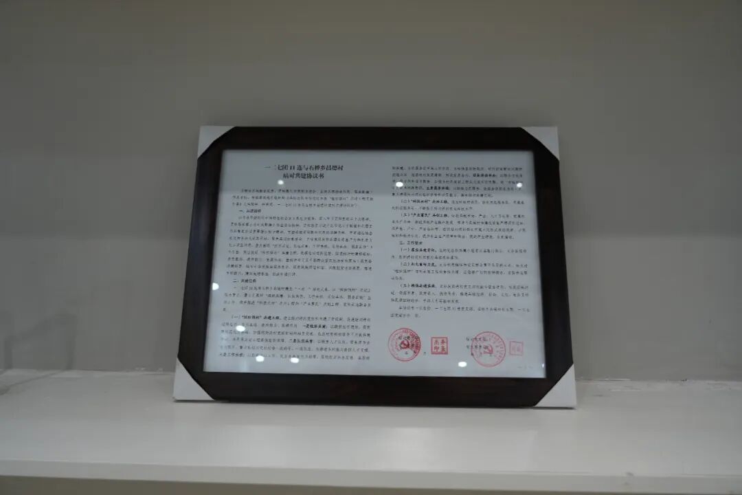 为了进一步探索“团结”的故事,记者来到此行的第三站,昌德村兵地融情馆。融情馆里,塔城地区第一份兵地共建协议书《一二七团11连与石桥乡昌德村结对共建协议书》原件在展柜里,与融合发展历程的照片等陈列,见证了兵地情谊。
