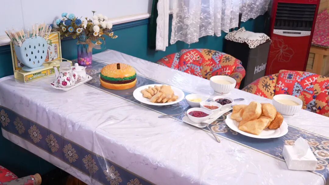 村民巴合提努尔・阿扎提说:“村里给我提供了这个奶茶馆,我们手工制作的工艺品,游客都拿着当个纪念品啊,基本上一年四五万块钱的收入,现在我当妈的可以满足孩子的需求,心里特别自豪!”