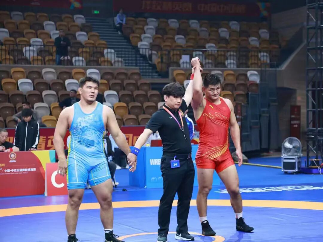 2024年,中亚五国摔跤精英赛赛场上的哈比拉·阿吾萨衣满。