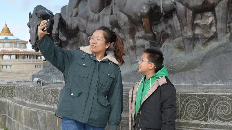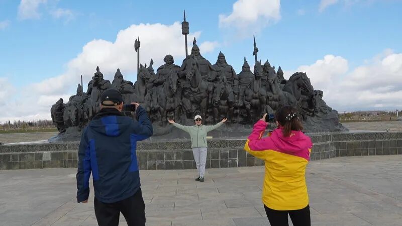 户外展区同样人气十足。江格尔十二勇士雕塑前成了“打卡热点”,游客们驻足观赏,纷纷合影留念,在触摸雕塑粗犷线条的同时,感受那份跨越千年的豪迈气魄,让英雄史诗的精神记忆悄然融入假期时光。假期,每日接待游客量可达到400余人。