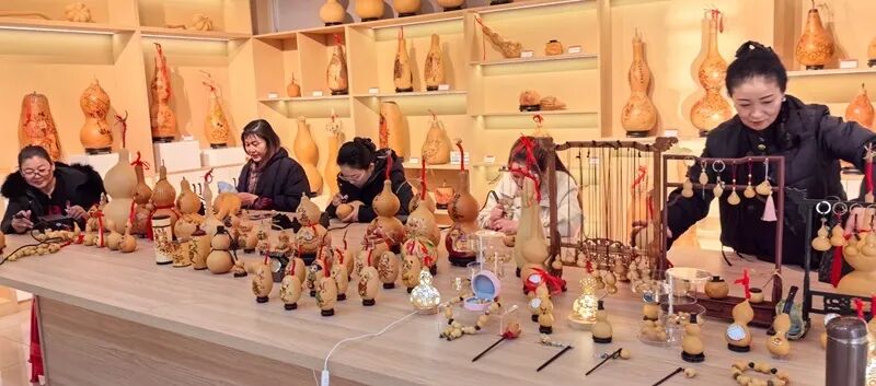 如今,这个小而精的“葫芦烙画工作室”更加忙碌了,办培训、搞研学,不但有非遗体验,还能现场看各类展销作品……前后开展了50余场活动。这股蓬勃的热潮,直接催生了额敏县民间艺术协会葫芦烙画艺术委员会的成立,吸引了57名会员,更可喜的是,30名中小学老师也在这里学成出师,把葫芦烙画这门特色课程带进了孩子们的课堂。2024年,在新疆维吾尔自治区第二届职业技能大赛中,额敏县文联民间艺术协会的葫芦烙画文创产品亮相喀什国际会展中心塔城地区特色文化产品展厅,吸引了各界人士纷纷驻足观看和把玩;2025年的春晚展演中,一个30多人共同参与的葫芦烙画、剪纸文创节目《非遗过大年》闪亮登场赢得满堂彩,让各族群众看得津津有味、称赞有加。