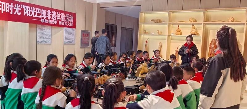 小学生在新疆塔城额敏县榆柳巷葫芦烙画研学基地参加非遗体验活动。