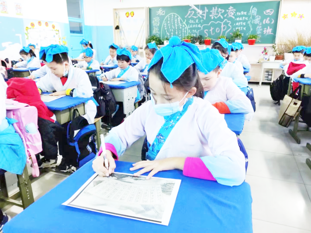 县第三中学学生在上书法课。和布克赛尔县委宣传部提供