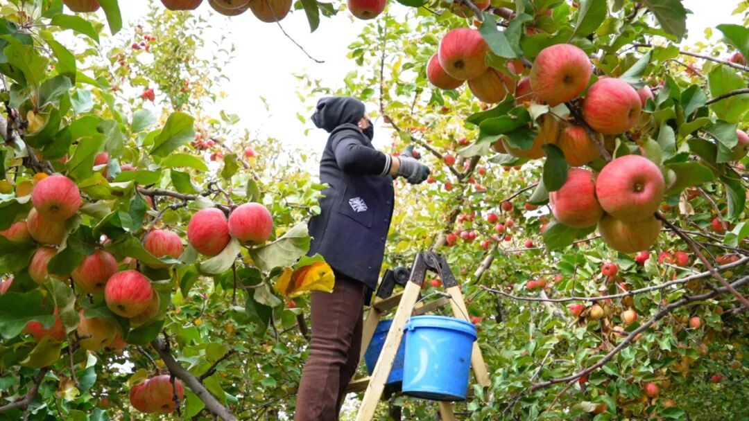 沙湾市博尔通古乡的苹果园迎来采收期。