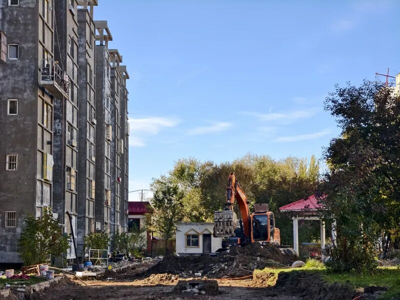 秋日暖阳下,塔城市新城街道哈尔墩社区“在水一方”小区的改造工地一派繁忙——挖掘机轰鸣与工人作业声交织,奏响了国家老旧小区改造政策落地见效的“焕新乐章”。