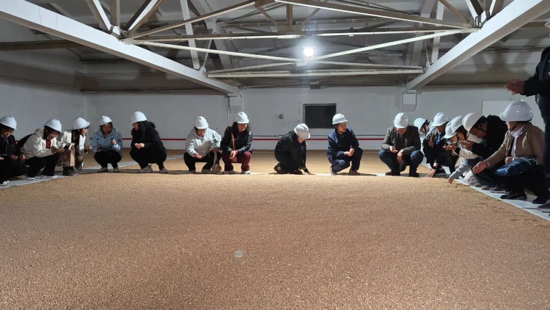 学习后,全体党员到新疆乌苏国家粮食储备库实地参观,先后了解储备库整体布局、企业文化建设情况,走进智能化控制室直观感受系统在粮食监测、管理中的高效应用,深刻体会科技对粮食安全的赋能作用;随后进入1号库,实地查看粮食存储现状,将“粮食安全”的认知从理论落到实处。