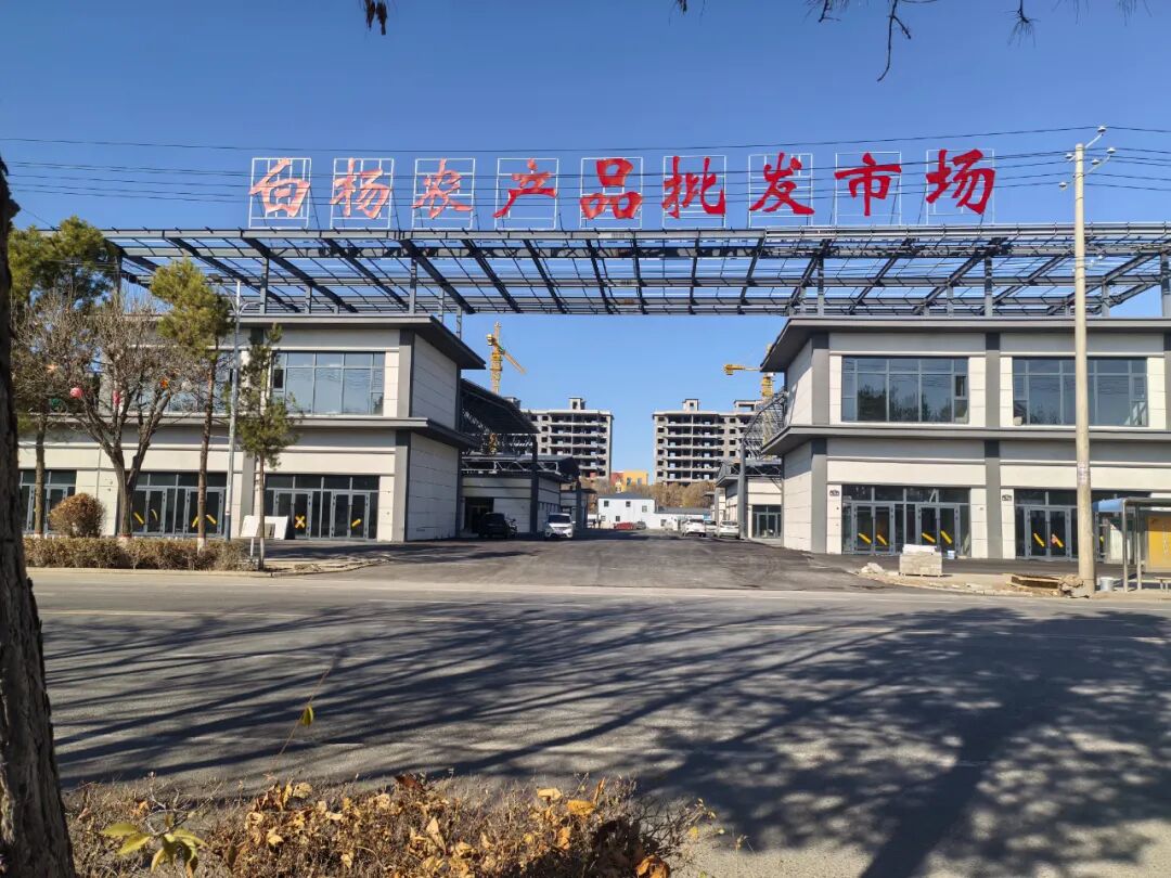 小白杨农产品批发市场位于兵团第九师朝阳街与友谊路交汇处,是由新疆江西商会、新疆方圆集团旗下全资子公司新疆鸿利房地产开发有限公司出资两亿多元,打造的额敏辖区第一个智慧化农产品批发市场,建筑面积3.2万平方米,设置农产品批发、零售、加工、仓储、物流、配送等8个功能区,220间商铺,2万多平方米配套停车场,服务塔城市、兵团第九师白杨市、裕民县、托里县等周边4个县(市)、15个乡(镇)场、7个团(场)。