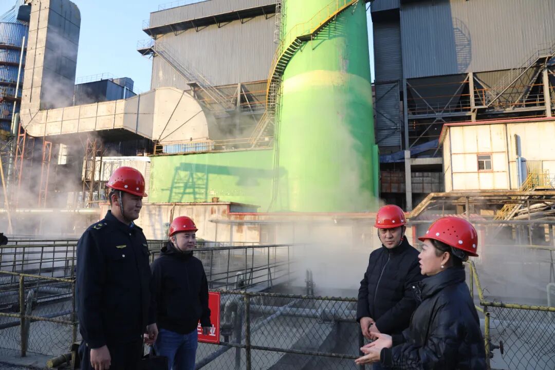 塔城地区生态环境局塔城市分局工作人员在鸿瑞热力有限公司了解锅炉超低排放改造运行情况。