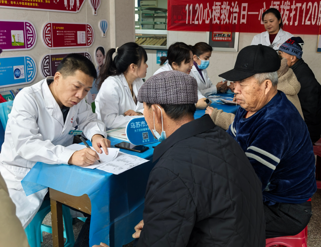 11月20日,乌苏市人民医院心内科医护团队走进哈图布呼镇卫生院开展了义诊活动,将心血管健康服务送到群众家门口,让急救理念扎根基层。