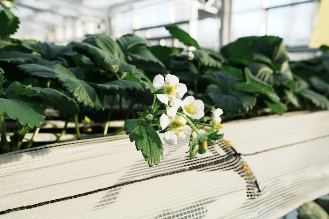 阳光下,绿油油的草莓植株散发出勃勃生机。