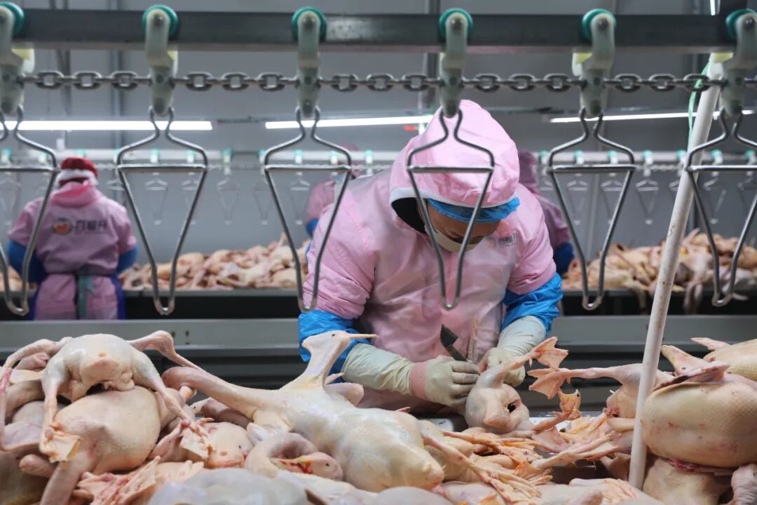 在这段旅程的起点,园区内种鸭存栏规模已达50万只。现代化养殖基地被清晰划分为种鸭区、商品鸭区与孵化区,共计101栋标准化鸭舍。这条产业链不仅产出优质的鸭产品,更“孵化”出近300个稳定的就业岗位,让当地群众在家门口端起“金饭碗”,成为带动增收的坚实力量。