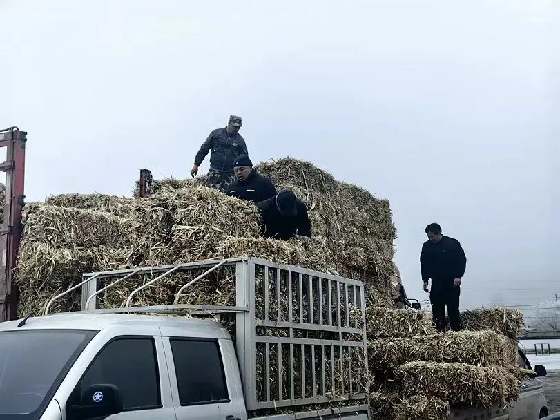 很快,购买的饲草料拉来了,在集中发放现场,村干部、工作队队员与村民相互配合,搬卸、装车、清点有序进行,一捆捆玉米秸秆成为寒冬里最暖心的“民生礼包”。