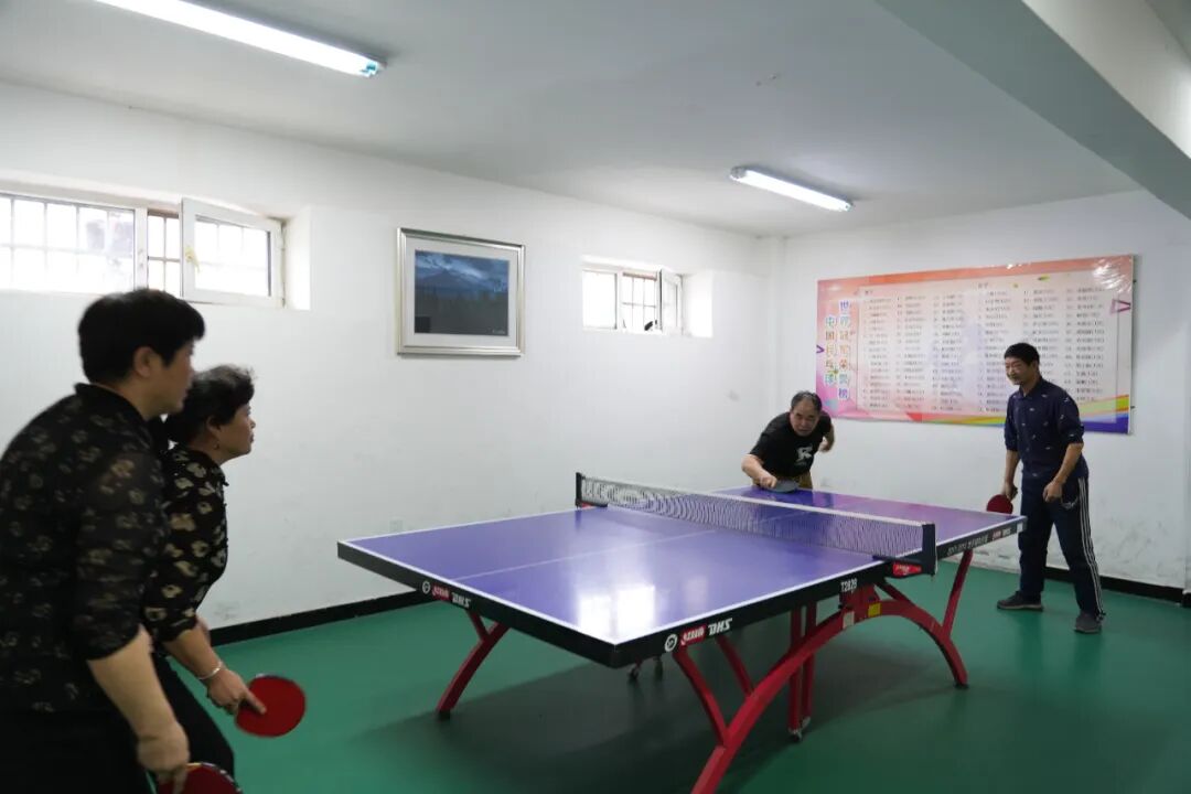 居民们正在打乒乓球。