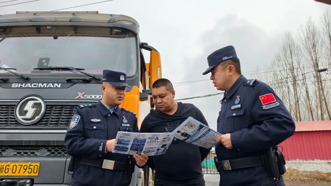 民警向货车司机宣讲交通法规。
