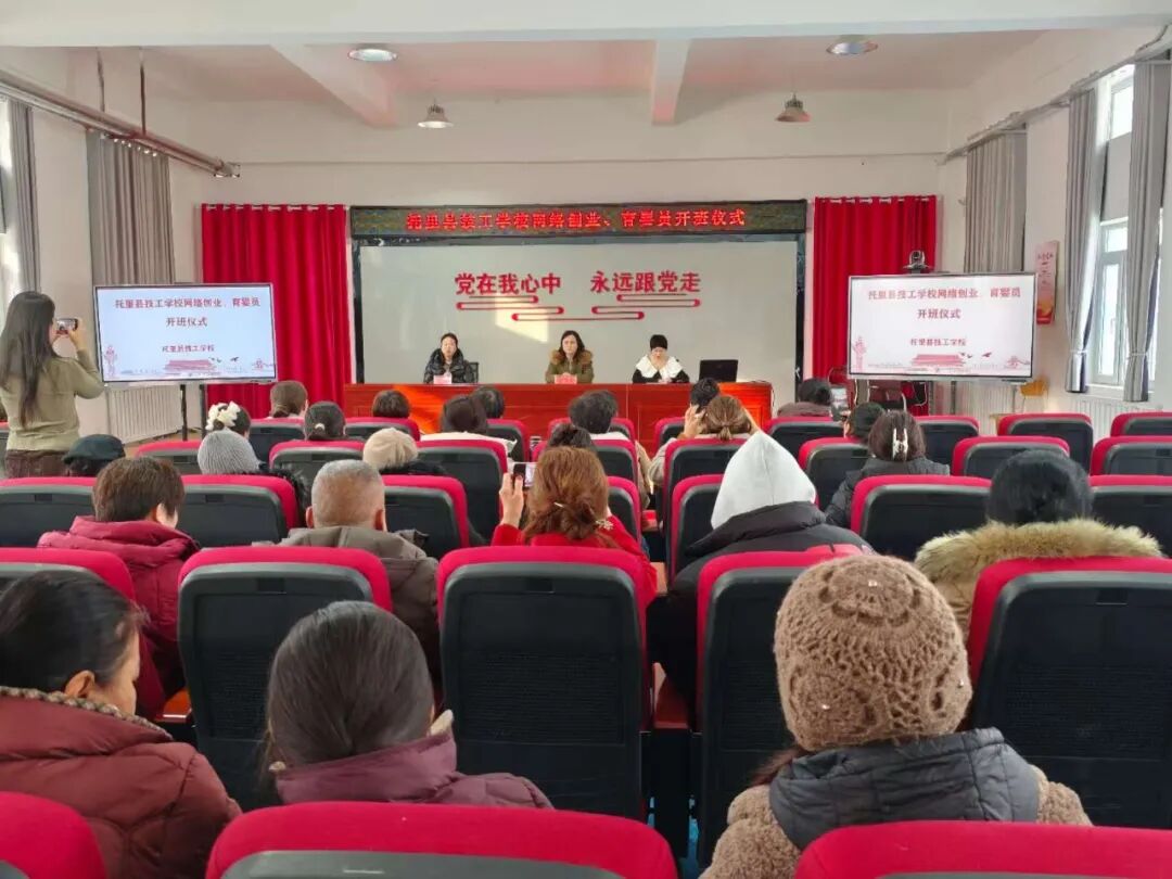 托里县技工学校举行网络创业与育婴员培训班开班仪式。