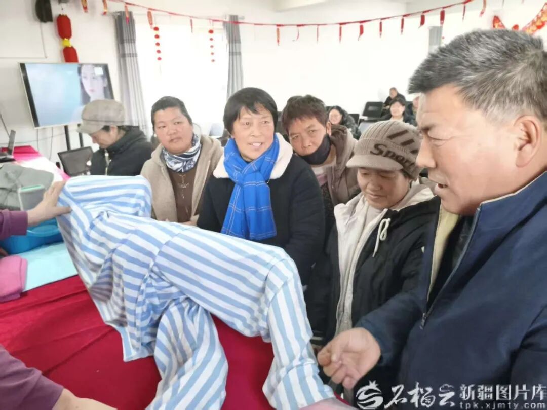 1月14日,乌苏市人社局将冬季培训送到群众家门口。图为村民在乌苏市华创职业培训学校老师指导下,学习家务服务员技能。图/乌苏市人社局提供
