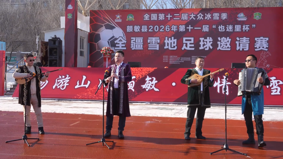 1月30日,第十二届全国大众冰雪季“热雪塔城·冬韵飞扬”额敏县2026年第十一届“也迷里杯”全疆雪地足球邀请赛在额敏县激情开赛,来自全疆各地州市的十四支代表队相聚额敏、同场竞技,共同点燃冰雪运动的热情,奏响冬日运动的激情乐章。