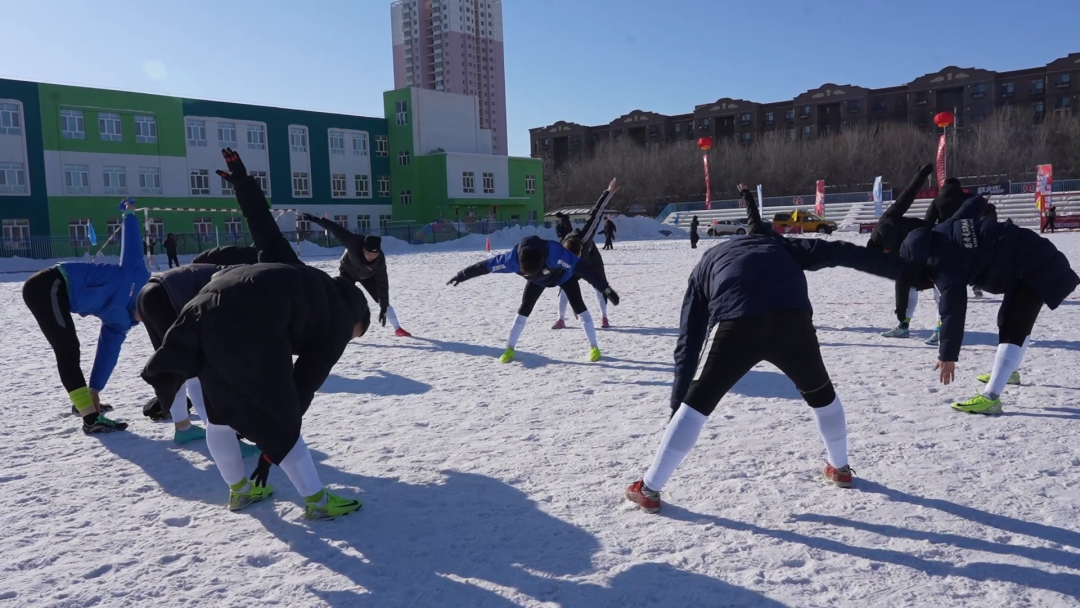 伴随着欢呼声,首场比赛火热开赛。运动员们脚踏雪地飞奔穿梭,精准传球、凌厉射门,将雪地足球的别样趣味与永不言弃的拼搏精神展现得淋漓尽致。