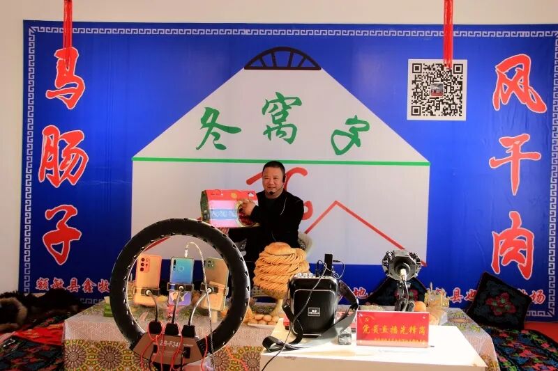 2024年,鑫牧畜禽养殖专业合作社党支部书记徐忠伟看到一些外地客商春节前来额敏想选购当地特产,常常苦于没有一个集中选购的地方,就主动作为,当年投资500万元建成一栋集展示宣传、客商洽谈于一体的展销交易综合楼,将350平方米的一楼大厅装修成展销厅。