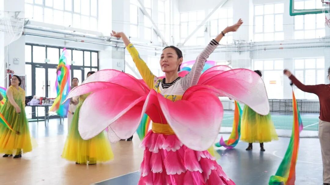 2月25日,金沟河镇200余人的秧歌社火队伍在沙湾市第三中学体育馆紧张排练。现场,队员们在专业老师的指导下全情投入,认真打磨每一个动作和队形。今年的节目编排以“传统+现代+地方元素”相结合,分为秧歌、舞龙舞狮、厨师舞、现代舞、红旗队五个版块。
