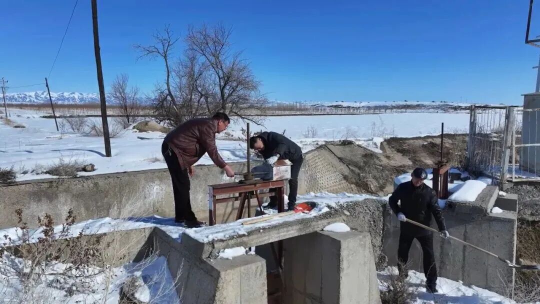 在额敏县北部灌区等地,额敏县水利系统组织干部职工对水库大坝、排洪渠、桥涵水闸等进行破冰清雪和杂物疏通工作。