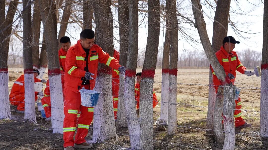 在吉也克镇至阿勒腾也木勒乡牧业公路沿线30公里的林带上,700亩树木披上了整齐的“白衣”,宛如列队的卫士守护着乡村公路。通过树木刷白,有效预防病虫鼠害、抵御低温冻害、减少树木晒伤,切实巩固过往绿化成果。