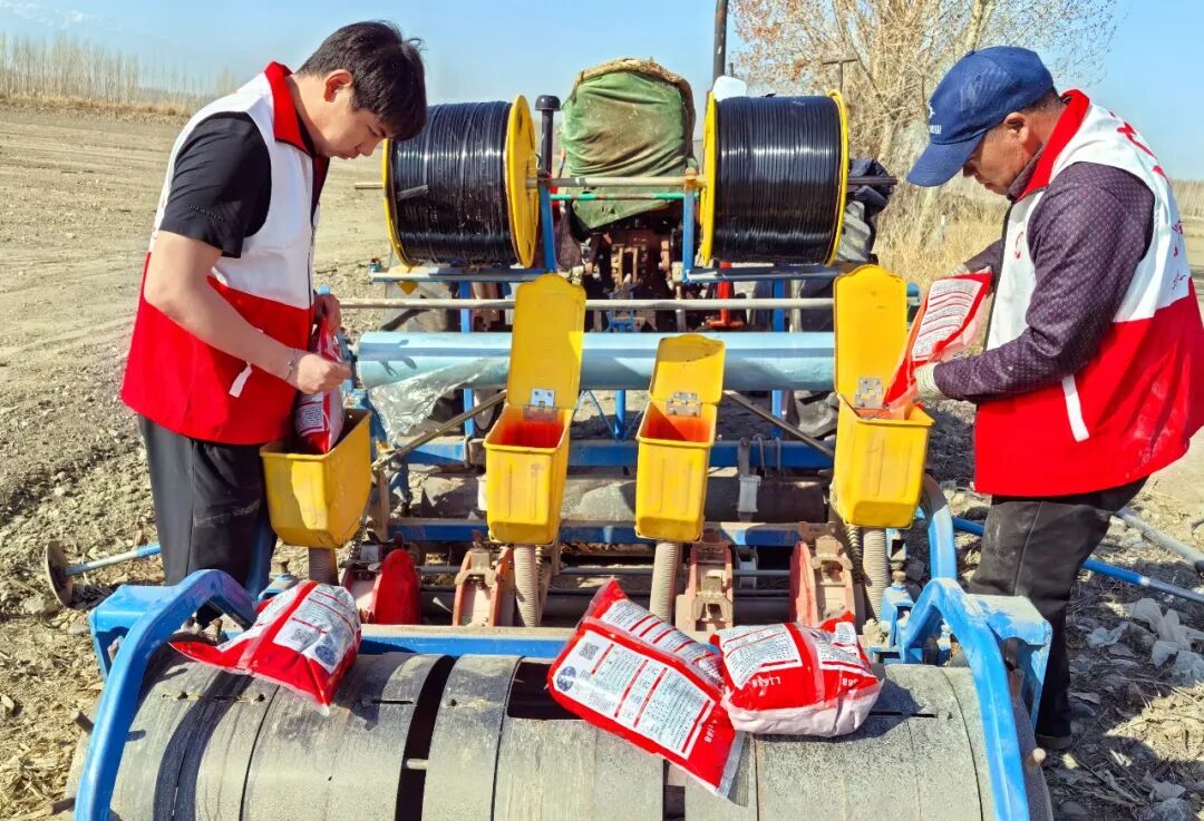 4月6日,在哈图布呼镇布尔增村种植户刘振良的玉米种植田里,现代化播种机往来穿梭,农机手娴熟操作设备,一次性完成施肥、播种等多道工序,精准高效、省时省力。田间地头,农技人员与种植户并肩作战,一同查看播种进度。