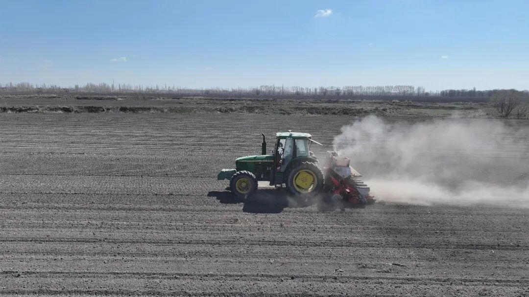 4月的塔城市也门勒乡,广袤田野间一派热火朝天的繁忙景象,玉米、食葵、小麦、甜菜等各类农作物播种工作有序推进。