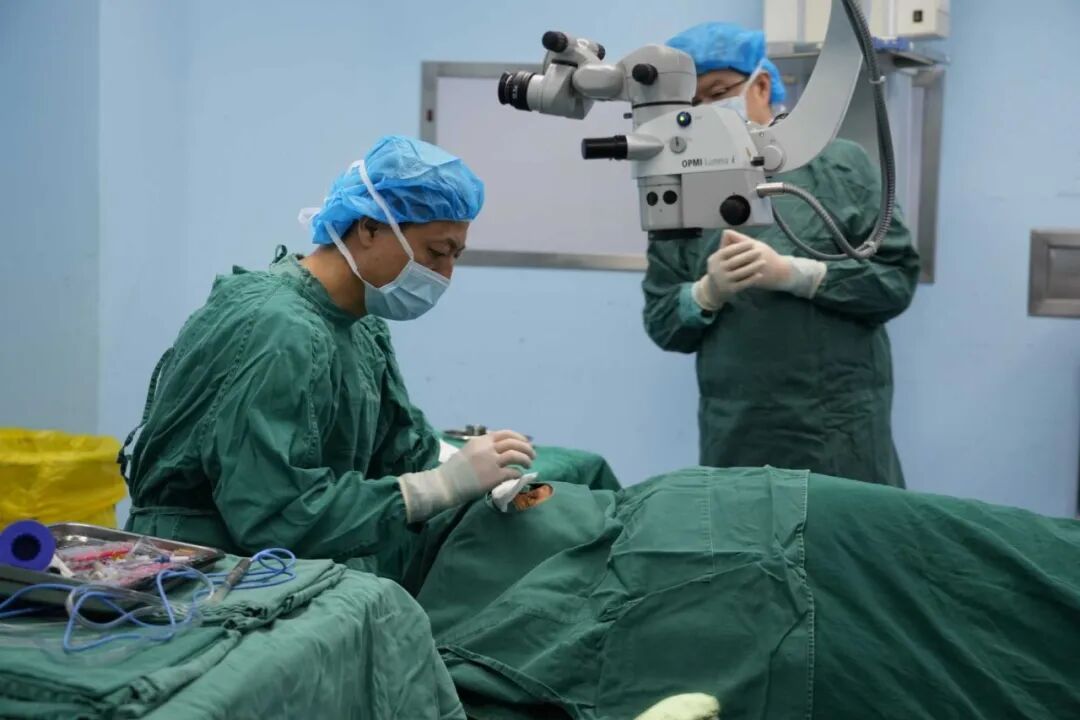 自治区眼科专家和额敏县人民医院五官科医生为白内障患者进行手术。